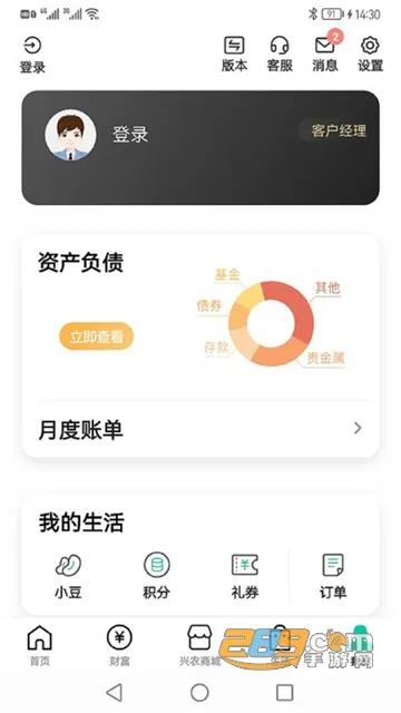 3、集金融应用和增值服务于一体,包含账户管理、转账支付、财富管理等功能,带来便捷的移动金融体验。