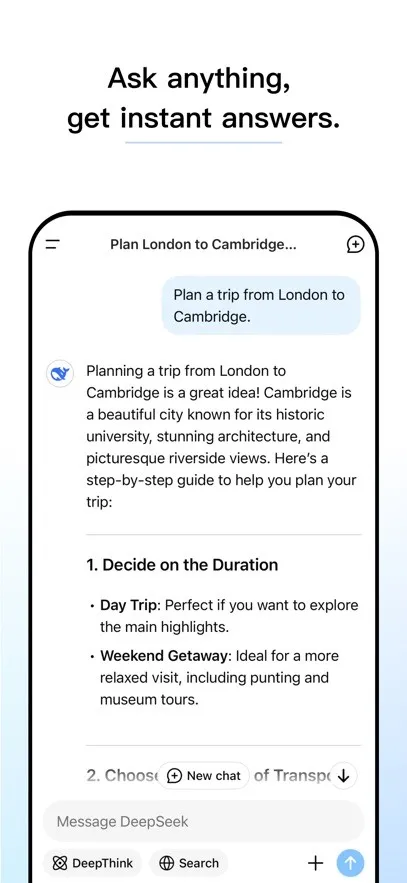 DeepSeek安卓版是深度求索推出的AI智能对话助手。有国内版和国外版,采用混合专家MoE架构,具备多场景应用能力,有出色语言理解与代码生成能力,开源且商用友好,价格低、功能全,能助力用户高效生活 。