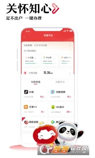 2、功能丰富 集查询、交费、业务办理、生活服务于一身,还提供合约购机、上门服务等。