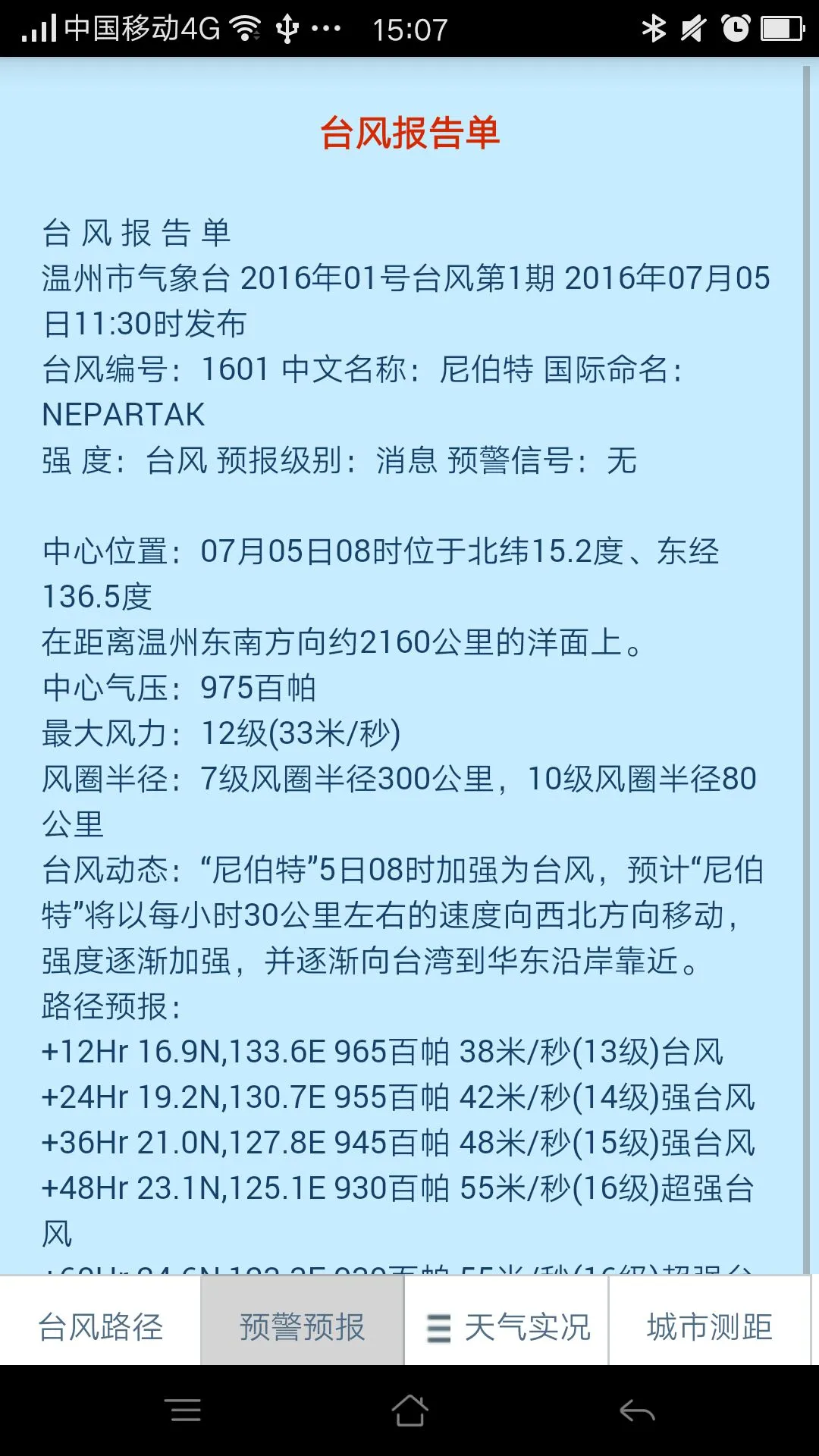 3、预警及时 能第一时间发布台风预警信息,为沿海地区市民提供提前预警。