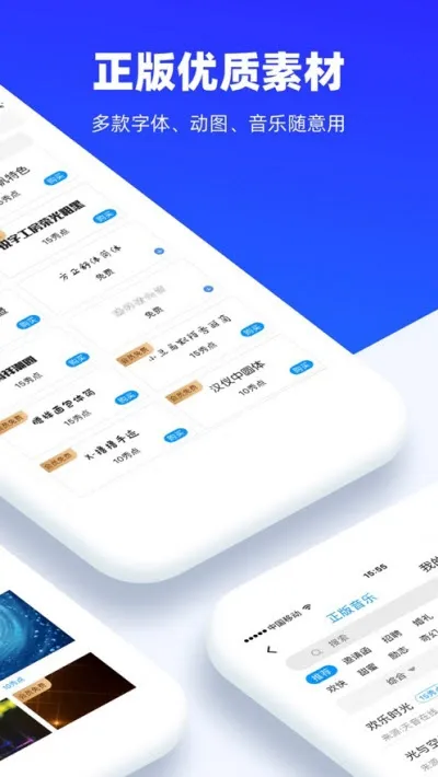 2、正版素材:100万正版素材,让用户使用更放心,不用担心版权问题。