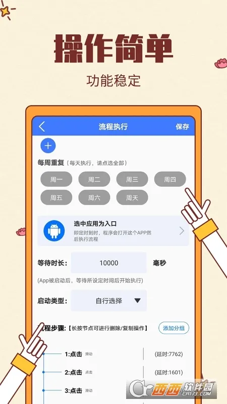 1、自动连点器2025,支持Android 7.0及以上系统,轻松实现屏幕自动点击。