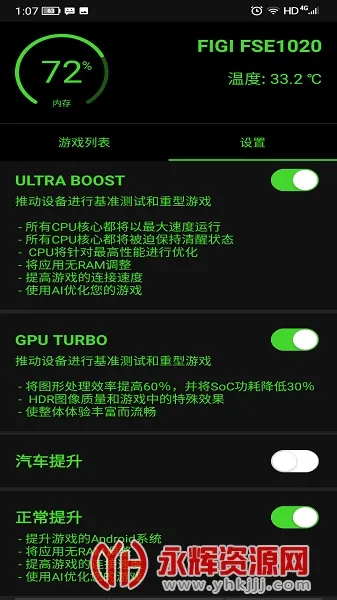 4 支持优化游戏画质、提高帧数及手机运行速度 。